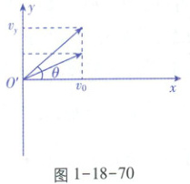 (2)如图$1-18-70$所示,$\tan\theta=\frac{v_y}{v_0}$,当$\tan\theta$有最大值时,$v_y$最大,$R$最大,此时$R= r$,又$B= \frac{2\pi mv_0}{eL}$,$R= \frac{mv_y}{Be}$,联立可得$v_{y\max}=\frac{2\pi v_0r}{L}$,$\tan\theta=\frac{2\pi r}{L}$.