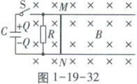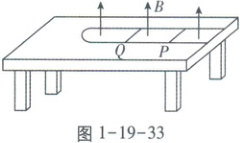 例 493 [全国甲 2023·25]如图 1-19-33,水平桌面上固定一光滑 U 型金属导轨,其平行部分的间距为 $ l $,导轨的最右端与桌子右边缘对齐,导轨的电阻忽略不计。导轨所在区域有方向竖直向上的匀强磁场,磁感应强度大小为 $ B $。一质量为 $ m $、电阻为 $ R $、长度也为 $ l $ 的金属棒 $ P $ 静止在导轨上。导轨上质量为 $ 3m $ 的绝缘棒 $ Q $ 位于 $ P $ 的左侧,以大小为 $ v_0 $ 的速度向 $ P $ 运动并与 $ P $ 发生弹性碰撞,碰撞时间极短。碰撞一次后,$ P $ 和 $ Q $ 先后从导轨的最右端滑出导轨,并落在地面上同一地点。$ P $ 在导轨上运动时,两端与导轨接触良好,$ P $ 与 $ Q $ 始终平行。不计空气阻力。求