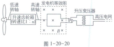 例523 [河北新高考]张家口市坝上地区的风力发电场是北京冬奥会绿色电能的主要供应地之一,其发电、输电简易模型如图1-20-20所示,已知风轮机叶片转速为每秒$z$转,通过转速比为$1:n$的升速齿轮箱带动发电机线圈高速转动,发电机线圈面积为$S$,匝数为$N$,匀强磁场的磁感应强度为$B$,$t = 0$时刻,线圈所在平面与磁场方向垂直,发电机产生的交变电流经过理想变压器升压后,输出电压为$U$.忽略线圈电阻,下列说法正确的是(