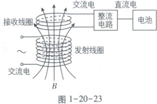 例526 [湖北新高考]近年来,基于变压器原理的无线充电技术得到了广泛应用,其简化的充电原理图如图1-20-23所示.发射线圈的输入电压为220V、匝数为1100匝,接收线圈的匝数为50匝.若工作状态下,穿过接收线圈的磁通量约为发射线圈的80%,忽略其他损耗,下列说法正确的是( )