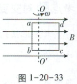 例536 [辽宁新高考]如图1-20-33所示,$N匝正方形闭合金属线圈abcd边长为L$,线圈处于磁感应强度大小为$B$的匀强磁场中,绕着与磁场垂直且与线圈共面的轴$OO'以角速度\omega$匀速转动,$ab边距轴\frac{L}{4}$。线圈中感应电动势的有效值为(