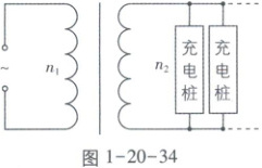 例537 [海南2024·9]电动汽车充电站变压器(视为理想变压器)输入电压为10kV,输出电压为220V,每个充电桩输出电流16A,设原、副线圈匝数分别为$n_{1}$、$n_{2}$,输入正弦交流电的频率为50Hz,则下列说法正确的是(