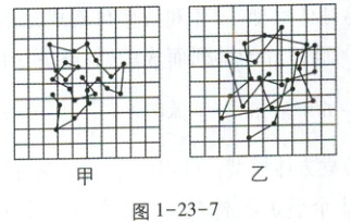 例 563 图 1 - 23 - 7 中甲、乙两图是某同学从资料中查到的两张记录水中炭粒运动位置连线的图片,记录炭粒位置的时间间隔均为 30 s,两方格纸中每格表示的长度相同。比较两张图片可知:若水温相同,