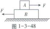 例57 如图1-3-48所示,两个等大、反向的水平力分别作用在物体A和B上,A、B两物体均处于静止状态. 若各接触面与水平地面平行,关于A、B两物体各受几个力,下列说法正确的是(