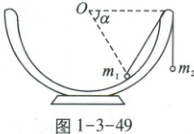 例60 如图1 - 3 - 49所示,一个半球形的碗放在桌面上,碗口水平,$O$ 点为其球心,碗的内表面及碗口是光滑的. 一根细线跨在碗口上,线的两端分别系有质量为 $m_{1}$ 和 $m_{2}$ 的小球,当它们处于平衡状态时,质量为 $m_{1}$ 的小球与 $O$ 点的连线与水平方向的夹角为 $\alpha = 60^{\circ}$. 则两小球的质量比 $\frac{m_{2}}{m_{1}}$ 为(