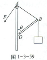 例65 如图1-3-57所示,电线AB下端有一盏电灯,用绳子BC将其拉离墙壁,在保证电线AB与竖直墙壁间的夹角θ不变的情况下,使绳子BC由水平方向逐渐向上转动至竖直方向,则绳子BC中的拉力的变化情况是( )