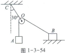 例63 如图1 - 3 - 54所示,绳 $OC$ 与竖直方向成 $30^{\circ}$ 角,$O$ 为质量不计的光滑滑轮,已知物体 $B$ 重 $1000\ N$,物体 $A$ 重 $400\ N$,物体 $A$、$B$ 均静止. 求: