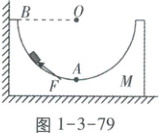 例82 [湖南新高考]质量为 $ M $ 的凹槽静止在水平地面上,内壁为半圆柱面,截面如图1-3-79所示,$ A $ 为半圆的最低点,$ B $ 为半圆水平直径的端点. 凹槽恰好与竖直墙面接触,内有一质量为 $ m $ 的小滑块. 用推力 $ F $ 推动小滑块由 $ A $ 点向 $ B $ 点缓慢移动,力 $ F $ 的方向始终沿圆弧的切线方向,在此过程中所有摩擦均可忽略,下列说法正确的是(