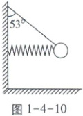 例87 如图1-4-10所示,细绳一端固定在墙上,另一端拴一个质量为$m$的小球,小球用固定在墙上的水平轻弹簧支撑,静止时细绳与竖直方向的夹角为$53^{\circ}$(已知重力加速度为$g$,$\cos 53^{\circ}=0.6$,$\sin 53^{\circ}=0.8$),下列说法正确的是(