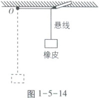 例 121 如图 1 - 5 - 14 所示,一块橡皮被系于 $ O $ 点的悬线拴住. 用铅笔靠着线的左侧水平向右匀速移动,运动中始终保持悬线竖直,则橡皮的(