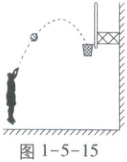 例 122 [辽宁 2023·1]某同学在练习投篮,篮球在空中的运动轨迹如图 1 - 5 - 15 中虚线所示,篮球所受合力 $ F $ 的示意图可能正确的是( )
