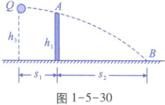 (2)设运动员击球点的高度为$h_{3}$时,以某一速度击球,该球既擦到网的上边缘又到达右边界,如图 1 - 5 - 30 所示的 QAB 轨迹,这是一条临界轨迹,如果击球速度变小则一定触网,如果速度变大则一定出界。根据平抛运动的规律有