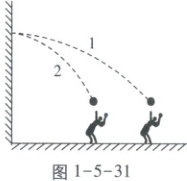 例 130 [江苏宿迁 2024 一模]如图 1 - 5 - 31 所示,网球运动员训练时,在同一高度的前、后两个不同位置,将球斜向上打出,球恰好能垂直撞在竖直墙上的同一点,不计空气阻力,则( )
