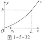 例 131 如图 1 - 5 - 32 所示,质量为 m 的飞机以水平初速度$v_{0}$飞离跑道后逐渐上升,若飞机的水平速度$v_{0}$不变,同时受到重力和竖直向上的恒定的升力,令飞机水平方向的位移为 L 时,上升的高度为 h,求: