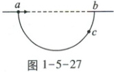 例 128 [海南高考]如图 1 - 5 - 27 所示,水平地面上有一个坑,其竖直截面为半圆,ab 为沿水平方向的直径。若在 a 点以初速度$v_{0}$沿 ab 方向抛出一小球,小球会击中坑壁上的 c 点。已知重力加速度为 g,c 点与水平地面的距离为圆半径的一半,求圆的半径。