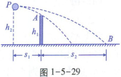 【解析】(1)设运动员击球的最小速度为$v_{1}$,球恰不触网即擦网上边缘而过,如图 1 - 5 - 29 所示的 PA 轨迹,根据平抛运动的规律有$s_{1}= v_{1}t_{1}$ ①