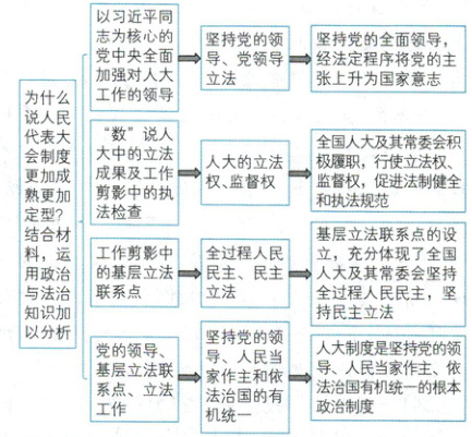 【解析】本题考查我国的根本政治制度。设问要求分析“为什么说人民代表大会制度更加成熟更加定型”,知识范围限定为政治与法治,可考虑从党的领导、全过程人民民主、依法治国的角度,联系材料有效信息组织答案。分析材料: