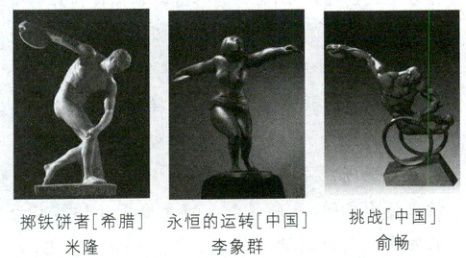 三尊雕塑都蕴含了人类的共同精神却各具特色。结合材料,分析《掷铁饼者》与《永恒的运转》所体现的共性与个性的关系。(9分)