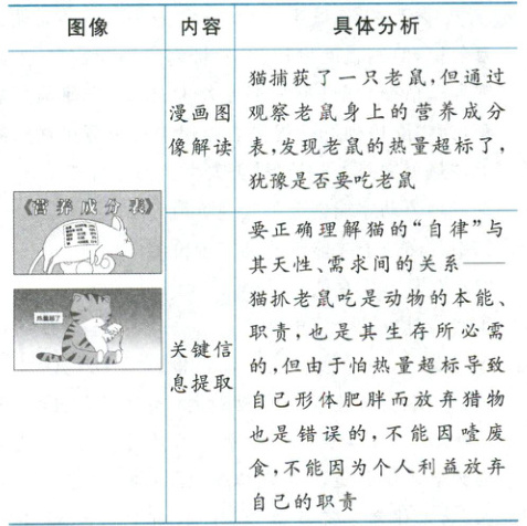 设问要求选择最优解,猫捕鼠是自身的职责所在,并不需要牺牲自我,也不属于诱惑,A、B、D 排除;我们要正确处理个人与集体、社会的关系,履行好自身职责的同时兼顾自身的利益,C 符合题意。