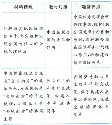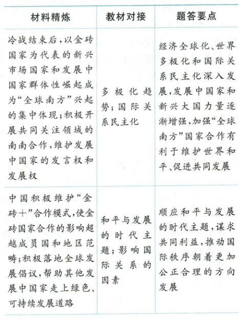 【答案】①经济全球化、世界多极化和国际关系民主化深入发展,发展中国家和新兴大国力量逐渐增强,加强“全球南方”国家合作有利于维护世界和平、促进共同发展;(2 分)