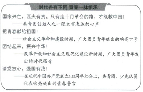 [北京新高考]一百年来,中国共青团始终与党同心、跟党奋斗,团结带领广大团员青年把忠诚书写在党和人民事业中,把青春播撒在民族复兴的征程上,把光荣镌刻在历史行进的史册里。