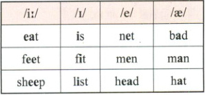 | /i:/ | /ɪ/ | /e/ | /æ/ |