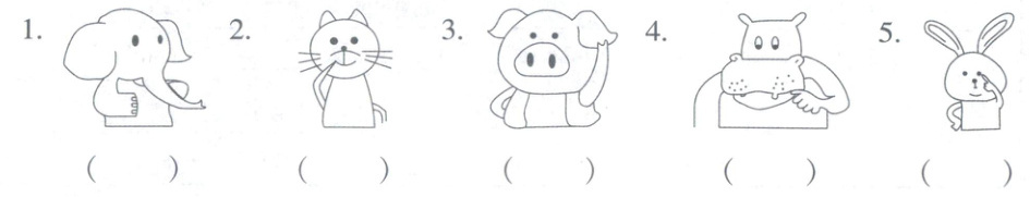 Ⅱ. 小动物们在介绍自己的五官。请你听一听,判断它们说的和指的是(√)否(×)相符,每个句子读两遍(每小题2分,共10分)