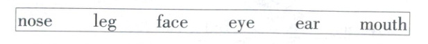 1. ear 2. eye 3. leg 4. mouth 5. nose 6. face