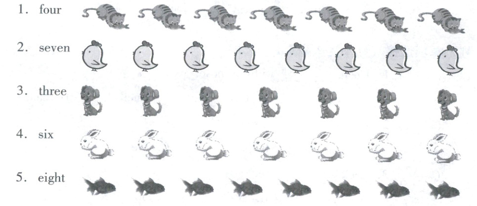 Ⅳ. 根据每小题前面的英语提示,在后面的图中圈出相应的数量(每小题2分,共10分)