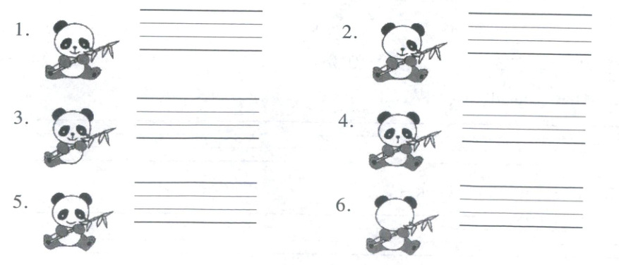 Ⅴ. 观察图片,大熊猫的身体都缺少了什么?请把它们找出来,并从方框中选择相应的单词规范地抄写在四线三格上(每小题2分,共12分)