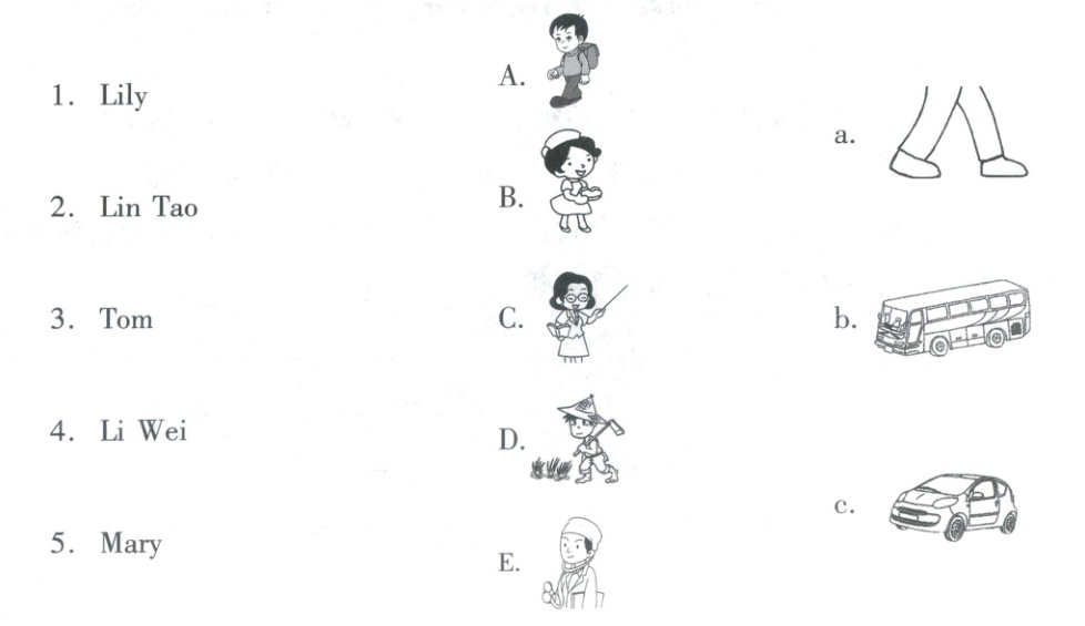 Ⅱ. 听录音,根据你所听到的句子,将人名与对应的图片连起来。每个句子读两遍(每小题 2 分,共 10 分)