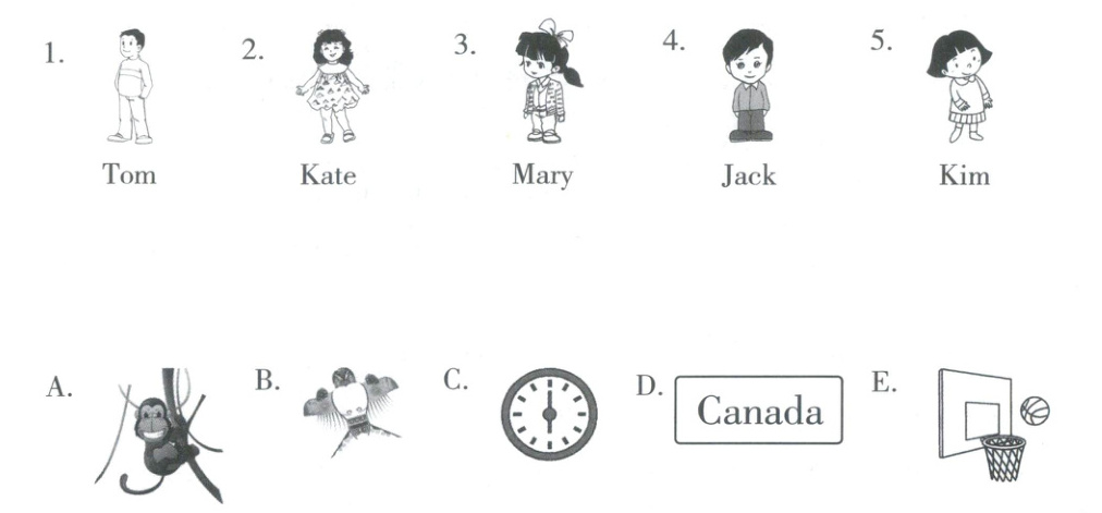 Ⅰ. 听录音,根据你所听到的内容连线。每个句子读两遍(每小题 2 分,共 10 分)