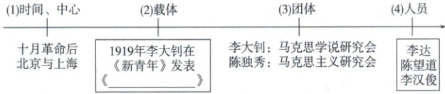 (3)团体:李大钊:马克思学说研究会;陈独秀:马克思主义研究会