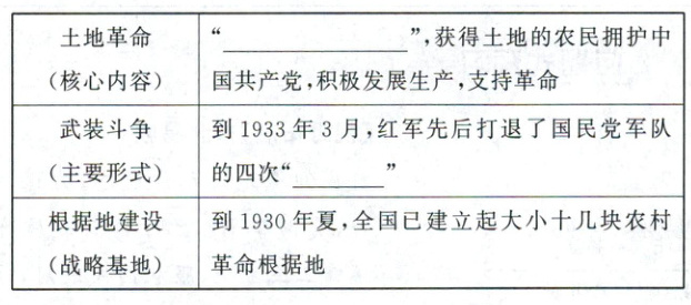 打土豪,分田地 围剿 农村包围城市,武装夺取政权 工农武装割据 中华苏维埃共和国临时中央政府