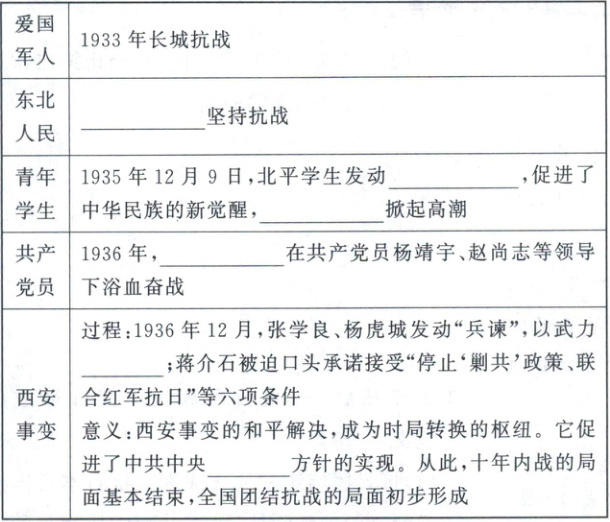 东北人民革命军 一二·九运动 抗日救亡运动 东北抗日联军 逼蒋抗日 联蒋抗日