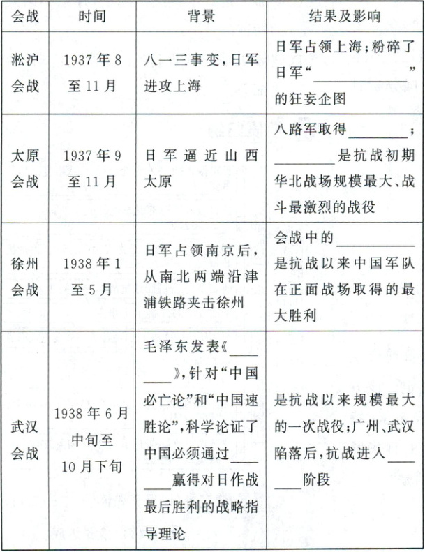 三个月亡华 平型关大捷 忻口会战 台儿庄大捷 论持久战 持久战 战略相持