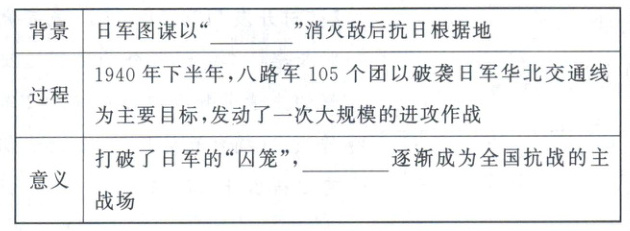 ① 敌后战场的开辟:上海、太原失守后,八路军、新四军建立多个巩固的
