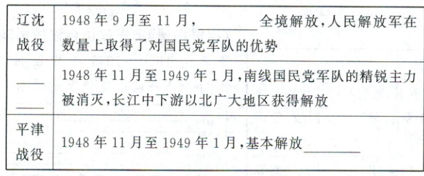 提示:人民解放军取得军事上的优势,解放战争进入夺取全国胜利的决战阶段。