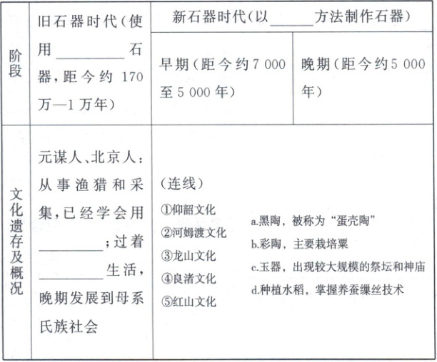 1.打制 磨制 火 群居 ①—b ②—d ③—a ④⑤—c