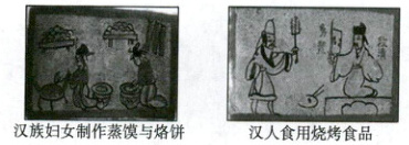(2)古墓中的画像砖承载着重要的历史信息,下面的两块画像砖出土于甘肃魏晋古墓,体现了“汉人胡食”的习俗。这可以用来研究的主题是(