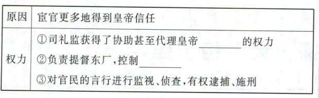 (2)宦官专权:①批红;②锦衣卫