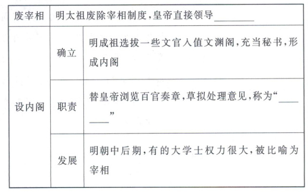 (1)废宰相:六部;设内阁:票拟;