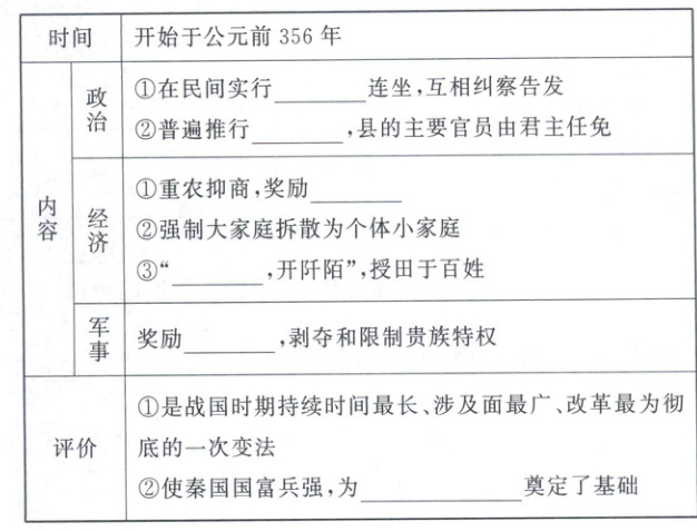富国强兵 君主专制 什伍 县制 耕织 废井田 军功 秦统一中国