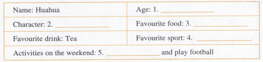 Ⅳ. 请听听 Jack 对好朋友 Huahua 的介绍,用英语补全下面的信息卡(每小题 2 分,共 10 分)