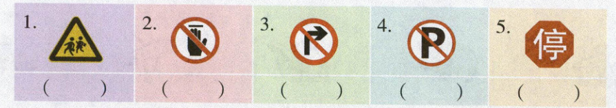 Ⅷ. 学校组织同学们去交通博物馆研学,同学们见了很多交通标识。请给下列标识选择正确的解释(每小题 2 分,共 10 分)