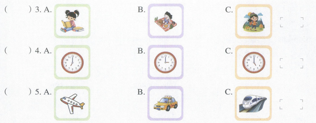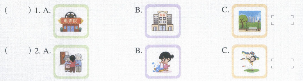 Ⅲ. Jack 在做英语测试,我们一起来帮帮他吧。听录音,选出与你所听内容相符的图片(每小题2分,共10分)