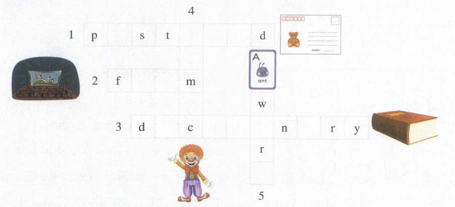 1. postcard 2. film 3. dictionary 4. comic 5. word