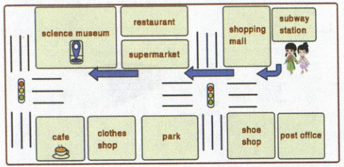 and the restaurant. When they go back to the subway station, they should turn left at the shopping mall. It’s a good way to travel around the city by 5. subway
