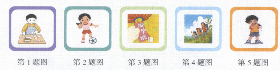 1. makes/cooks 2. playing football 3. doing word puzzles 4. goes hiking 5. singing songs