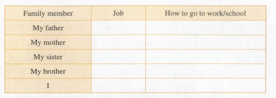 ) 5.—How ______ he go to work?—He ______ to work by car.